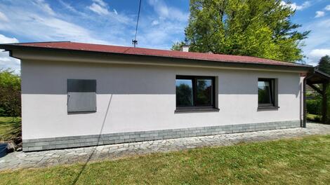 Prodej zděného domu v obci Nepomuk, okres Plzeň jih, ulice U Rybníka, zastavěná plocha domu je 59 m, vlastní pozemek včetně domu 540 m, stavba má číslo evidenční, pozemek je částečně oplocený, umístění na konci slepé ulice, výhled z pozemku je na Špitálský rybník, parkování je možné před domem. Dům je řešený jako přízemní 3+kk, pokoj s kuchyňskou linkou, obývací pokoj s krbem, malý pokoj, koupelna, samostatné WC. Nemovitost je napojena na elektřinu (230/400), kanalizaci, na studnu na pozemku (v cestě přímo před plotem je přípojka obecního vodovodu na který se dá napojit). V domě je ústřední topení na elektrokotel. Dále je v domě funkční krb. Dům je ve velmi dobrém technickém stavu. Zahrada je udržovaná. Celý pozemek je v rovině, místo je perfektní. Ve městě je pošta, mateřská a základní škola, zdravotnická zařízení, policie, dvě banky, sportovní zařízení sportovní hala, hřiště, tenisové kurty, muzea, galerie. Hezké a upravené okolí. Poloha nemovitosti je ve vedlejší ulici, dobré umístění v rámci obce. Autem Praha 80 minut, Plzeň 40 minut. Energetická třída G inzerovaného objektu je uvedena dočasně. Po dodání energetického štítku bude uvedena skutečná energetická třída této nemovitosti.