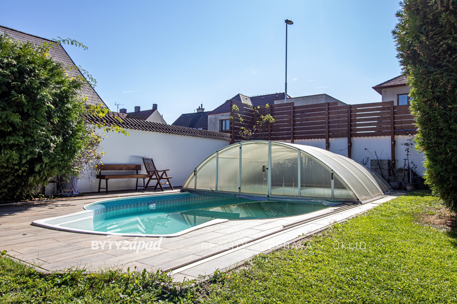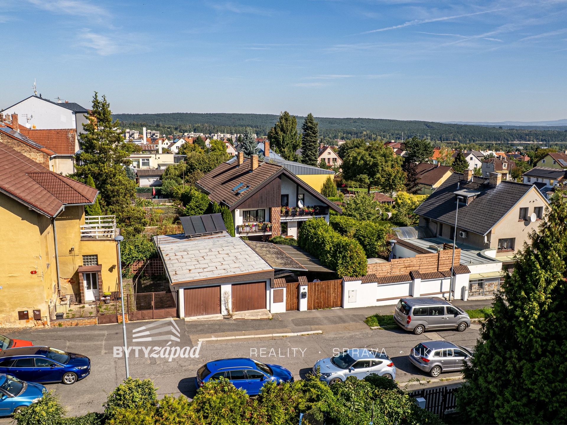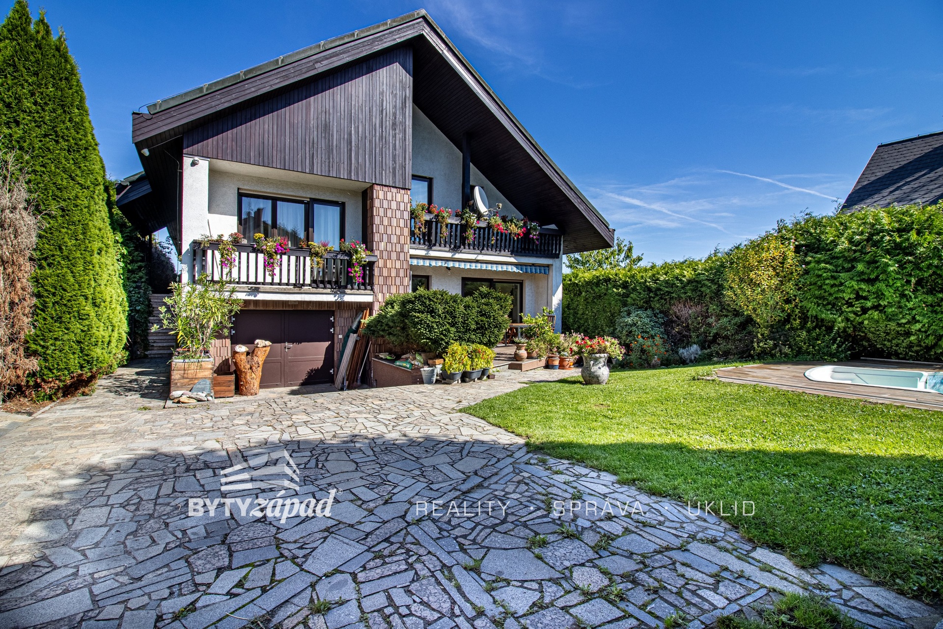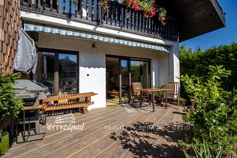 Naše společnost nabízí k prodeji dům se zahradou v Plzni-Bolevci, konkrétně v ulici Otakara Březiny. Dům byl postaven v roce 1993 a nachází se na konci slepé ulice. Přízemí domu tvoří prostorný obývací pokoj s krbovými kamny a se vstupem na terasu, kuchyně, chodba a schodiště do suterénu domu a do patra. V suterénu se nachází garáž, technická místnost, sklad a posilovna. V mezipatře domu je ložnice s balkonem, koupelna a pracovna s balkonem. V horním patře domu jsou 3 pokoje, koupelna a druhý obývací pokoj s balkonem a obytným podkrovím, které slouží jako ložnice. Dům je postaven z tvárnic Ytong, má sedlovou střechu, dřevěné podbití, suterén, celkem 4 toalety a 3 koupelny. Na zahradě je krytý bazén, dvě garáže a přístřešek nad příjezdovou cestou. Dům prošel několika renovacemi, např. výměnou vchodových a garážových dveří, střešní krytiny, proběhla modernizace koupelen, střešních oken, atd. Dům je vytápěn tepelným čerpadlem Panasonic Aquerea (2018), využití na ústřední vytápění a vytápění užitkové vody boileru, dále je zde solární systém podporující ohřev užitkové vody. Venkovní garáže jsou vybaveny roletovým pojezdem na dálkové ovládání. Dům je střežen systémem Jablotron a podpořen kamerovým systémem. Doporučujeme prohlídku s ohledem na ojedinělost lokality a nemovitosti jako takové. PENB je ve zpracování = aktuálně uvádíme G. Některé výměry jsou uvedeny pouze orientačně. Pro více informací či domluvení prohlídky volejte makléře.
