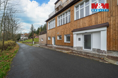 Nabízím k prodeji nájemní dům v Hamrech u Klatov, umístěný na samotě v krásné a klidné krajině. Jedná se o moderní novostavbu se třemi nadzemními podlažími, zastavěnou plochou 483 m2 a celkovou podlahovou plochou 890 m2. Pozemek má výměru 719 m2. Objekt zahrnuje 11 samostatných bytů, z nichž každý má vlastní sociální zařízení, sprchu a terasu o rozloze 15 m2. Dům je vytápěn kotlem na LTO, kanalizace je řešena tlakovým systémem a zdrojem vody je vlastní vrt i studna. K dispozici jsou také společné prostory, které zvyšují komfort užívání. Nemovitost je vhodná jako investiční příležitost s vysokým potenciálem pro dlouhodobý pronájem i rekreační využití v atraktivním prostředí.
