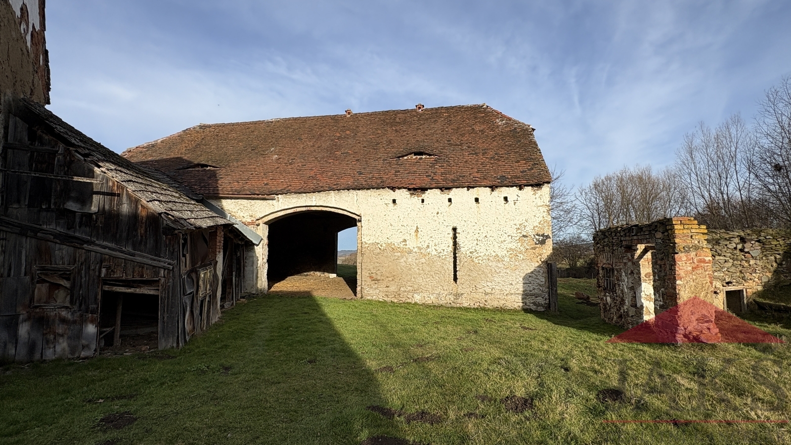 Nabízíme na prodej částečně podsklepenou bývalou zemědělskou usedlost, nyní rodinný dům (3+1; cca 90 m2) určený k rekonstrukci s navazující prostornou hospodářskou části (velká stáj/maštal s cihlovou klenbou a půdním prostorem vybízejícím k půdní vestavbě a velkou samostatně stojící průjezdnou stodolou s dřevníkem), uzavřeným dvorem kamennou zdí a zahradou 257 m2, stojící na okraji malebné šumavské vesničky Kadešice (540 m.n.m.) u Dražovic 2 km (obchod, tenisové kurty) v krásném podhůří Šumavy, nedaleko města Sušice 10 km, kde je veškerá občanská vybavenost. Možnost dokoupení navazujícího stavebního pozemku o výměře cca 1.860 m2 za cenu dohodou! Popis: částečně podsklepeno: 3x sklep (nová přípojka obecního vodovodu) s klenbou; přízemí: vstupní veranda, chodba se schodištěm do podkroví, koupelna (vana, umyvadlo, kotel na T.P. a el. boiler), technická místnost (WC, vodárna), obytná kuchyň (kuch. linka, dřez, plynový sporák na P.B., sporák na T.P.) s jídelnou, komora s klenbou a 2x pokoj (bez podlah); podkroví: podesta, podkrovní pokoj a půda (vhodná k vestavbě). Vedlejší stavby: navazující hospodářská část: prostorná stáj s cihlovou klenbou a kamennými koryty vč. půdního prostoru přístupného po venkovním žel. schodišti vhodného k půdní vestavbě například ateliéru či mezonetového apartmánu, obrovský dřevník, velká průjezdná stodola. Pozemek celkem: 1.527 m2; Zastavěná plocha a nádvoří: 1.270 m2; Zahrada: 257 m2; Možnost dokoupení navazujícího stavebního pozemku o výměře cca 1.860 m2 za cenu dohodou! Voda: vlastní kopaná studna a nová obecní přípojka; El.: 220/380 V; Vytápění a TUV: ÚT - kotel na T.P.; lokální - sporák na T.P. Velmi klidná vesnička s minimálním silničním provozem v podhůří Šumavy. Bývalá zemědělská usedlost s dochovanou zemědělskou částí s širokým potenciálem (obnovení stájí, renovace na vinárnu/pivnici či přestavba na apartmány či oblíbený glamping) a dobrým dosahem měst Sušice 10 km či Kašperské Hory 14 km. Nutno vidět!
