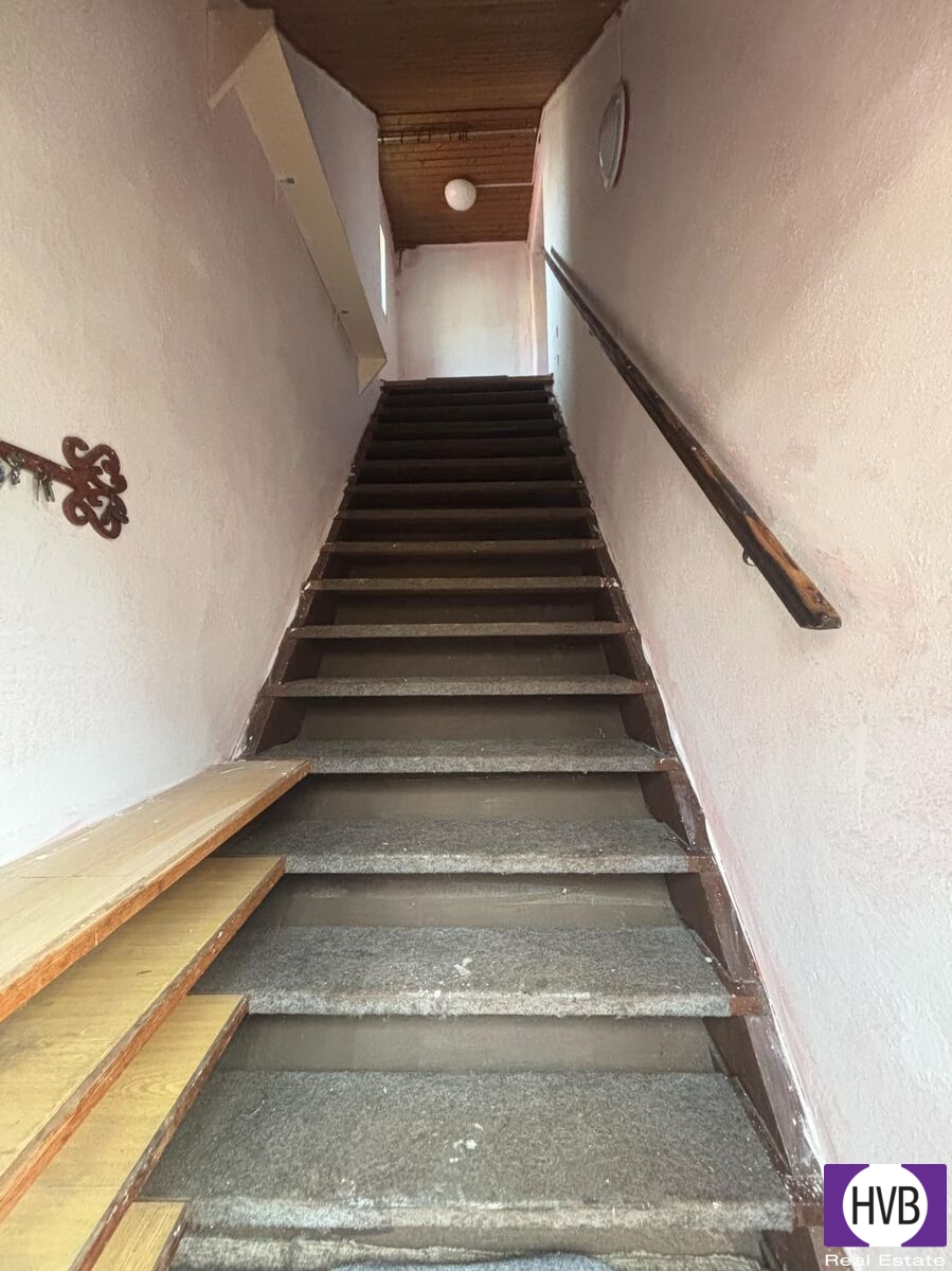 Nabízíme k prodeji RD o dipozici 4+2 na pozemku 517m2 v Horšovském Týně, okr. Domažlice. V nemovitosti jsou nyní dvě bytové jednoty o dispozici 2+1 včetně sociálního zázemí a každá jednotka má svůj vlastní vchod. Je také možno obě bytové jednotky propojit schodištěm z přízemí v jeden prostorný obytný prostor. Na dům navazuje zděná dílna, garáž a pergola. V zadní části zahrady jsou plechové přístřešky na parkování vozidel nebo skladování dřeva. Vytápění je zajišťováno kamny. V celém objektu je zaveden obecní vodovod. A odpady svedeny do obecní kanalizace. K domu je možný příjezd ze dvou stran, jak od řeky Radbuzy, tak od náměstí, kde jsou velká vrata na pozemek. Ze zahrady a z oken je pěkný výhled na řeku nebo na místní zámek. Nemovtost je možno využít jako investici nájemního bydlení nebo k podnikání v obchodě či gastronomii. Zadní část zahrady je možno využít ke stavbě menší budovy -garáže nebo skladovacího prostoru dle podmínek místního stavebního úřadu. Další informace telefonicky nebo na nezávazné prohlídce nemovitosti. Možnost vyřídit výhodné financování.