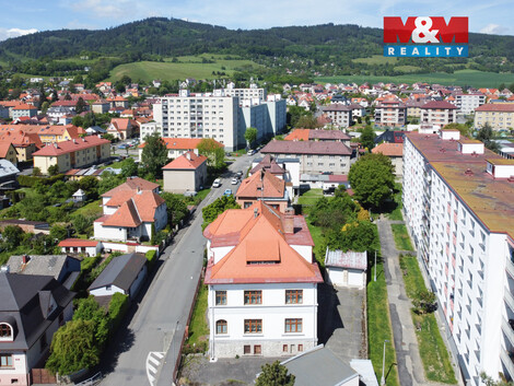 Nabízíme k prodeji ideální polovinu výjimečné vily z roku 1928, která představuje dokonalou harmonii prvorepublikové noblesy a současného komfortu. Tento architektonický skvost se nachází v rezidenční části města Sušice, několik minut chůze od historického centra, a okouzlí nejen svou historií, ale i velkorysým prostorem a pečlivě udržovaným interiérem. Třípodlažní vila s kompletním podsklepením nabízí dvě samostatné, nadstandardně prostorné bytové jednotky o dispozici 7+2 o podlahové ploše 180 m2 a podkrovní byt o rozloze 60m2. Suterén zahrnuje kotelnu, dílnu a skladové prostory s potenciálem přestavby na další bytovou jednotku či zázemí pro podnikání. Dům prošel citlivou rekonstrukcí, která zachovala původní architektonické prvky a zároveň přinesla moderní standard bydlení: dřevěná okna (2012),nová střecha (2014), tepelné čerpadlo. Na pozemku se nacházejí dvě zděné garáže a parkování pro 8 vozů. Zavolejte pro více informací k nemovitosti a domluvení prohlídky.