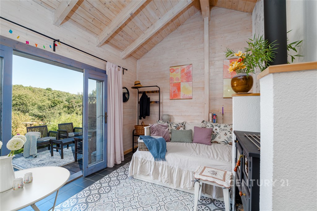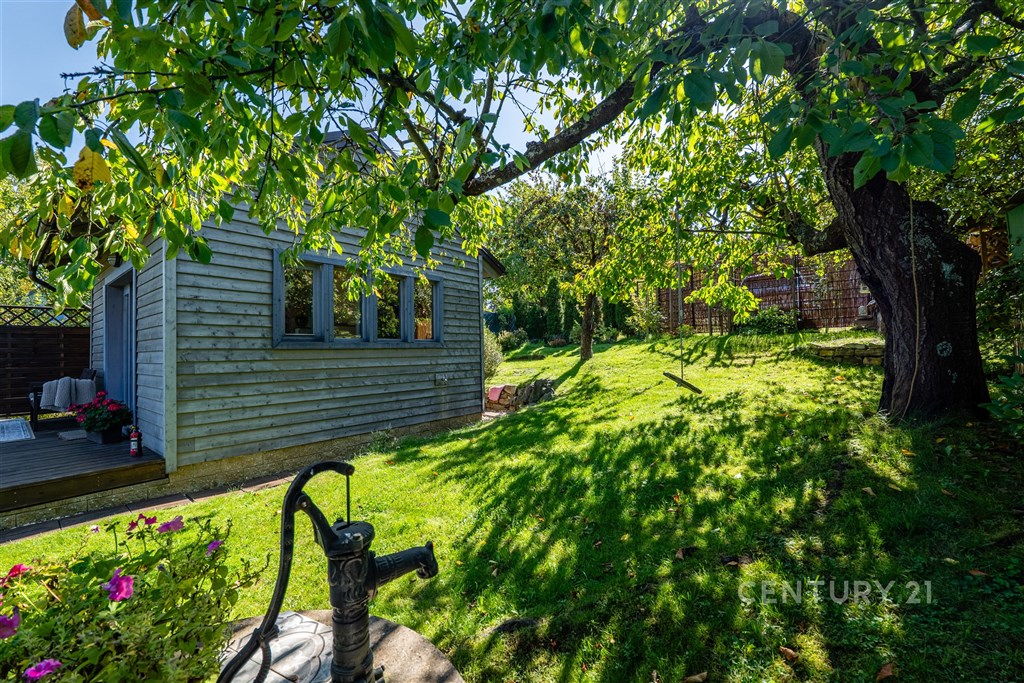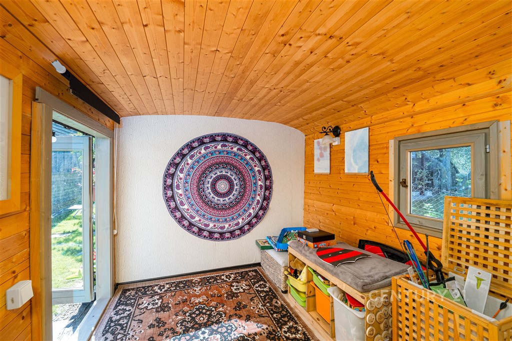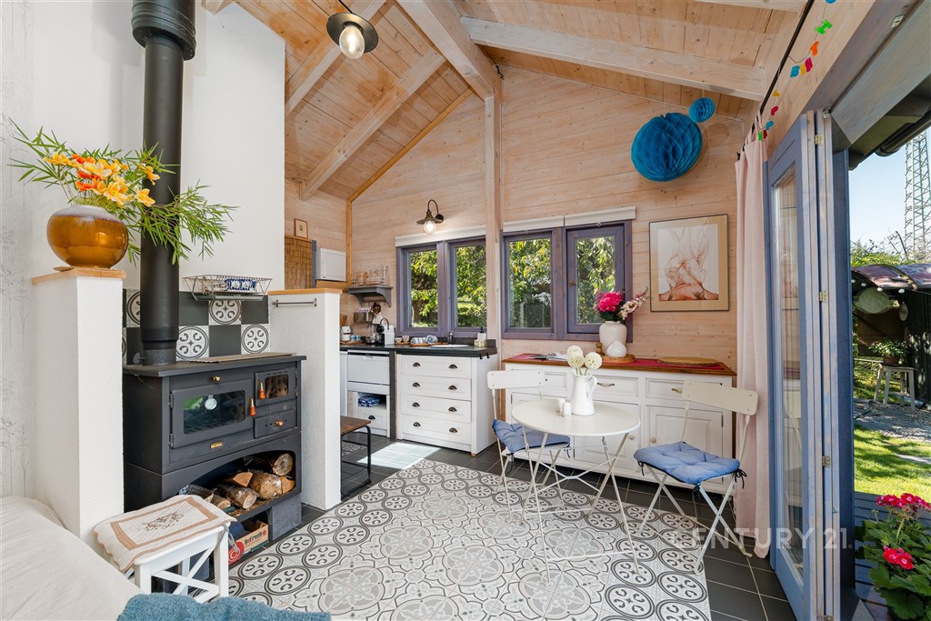 Jedná se o objekt rekreačního domku v zahrádkářské oblasti Výsluní, nacházející se v přední části zahrady ve velmi atraktivní lokalitě, dostupné autem, MHD i "pěší/cyklo" podél řeky Radbuzy v Českém údolí. Tento pozemek má vše, a k tomu je zde nová příjemná chata severského typu na pevných betonových základech s funkčním zázemím (elektřina, voda, odpadní vody). Díky odvedené práci současné majitelky je zde možné ihned užívat přednosti této nemovitosti a nejsou zde potřebné žádné další investice. Chata disponuje interiérovým a exteriérovým osvětlením, které umí navodit příjemnou atmosféru tohoto objektu. Okna a vchodové dveře jsou z dřevěných rámu s izolačním dvojsklem. Na základové desce je provedena hydroizolace zároveň jako protiradonová izolace. Splašková kanalizace je svedena do podzemní jímky. Dešťová voda stéká do nádrží u dešťových svodu a je využívána k zalévání zahrady. Studna byla prohloubena do 30m s čerpadlem a voda je zavedena do chaty (koupelna, kuchyně i s myčkou) a je možné komfortně zalévat celou zahradu po celé ploše. Pozemek slouží jako zahrada a je v mírně svažitém terénu směrem k řece. Automatická sekačka zajistí stále posekaný terén. Vzrostlé plodinové stromy (jabloně, třešně, švestky) vyvýšené záhony a maringotka, která může sloužit jako doposud (herna pro děti) nebo možnost ubytování pro přátelé. Pozemek je umístěn na okraji, nebude zde v budoucnu žádná další stavba, pozemek pod tímto pozemkem se nachází v ochranném pásmu.