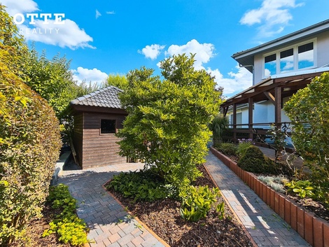 Předmětem nabídky k prodeji je rodinný dům kolaudovaný v roce 2002 v klidné a vyhledávané lokalitě v ulici Rozkvetlá v Plzni Černicích v Plzni. Patrový dům je umístěn na pozemcích o celkové výměře 780 m2. Zahrada díky umístění a vzrostlé okrasné zeleni zajišťuje soukromí. Na zahradě se nachází prostorná dřevěná terasa s pergolou sloužící především k relaxaci a odpočinku. Dispoziční řešení domu je 5+kk o užitné ploše cca 140 m2. V přízemí domu je vstupní předsíň, chodba se šatní skříní, u které je WC se sprchovým koutem a umyvadlem. Z chodby se vejde do prostorného obývacího pokoje s jídelní a kuchyňskou částí s nově nainstalovanou kuchyňskou linkou včetně vestavěných spotřebičů jako je indukční varná deska, elektrická varná trouba, digestoř, lednice, mikrovlnná trouba nebo např. systém tříděného odpadu. Na obývací prostor navazuje prostor používaný jako zimní zahrada se vstupem na venkovní zastřešenou terasu o velikosti cca 25 m2. Dále je v přízemí domu pracovna s krásným pohledem do zahrady a technická místnost kde je umístěn elektrický bojler, který zajišťuje ohřev teplé vody. Podlahu kryje vinyl a dlažba. V obývacím pokoji jsou krbová kamna a vestavěná skříň. V prvním patře domu, kam vystoupáme dřevěným schodištěm je středová chodba se samostatnými vstupy do tří pokojů a prostorné koupelny s vanou, umyvadlem, WC a bidetem. Podlahy v prvním patře jsou osazeny laminátovou plovoucí podlahou i dlažbou. Ve všech oknech v prvním patře jsou umístěné vnitřní žaluzie. Okna jsou plastová, v přízemí osazená venkovními elektrickými žaluziemi. V interiéru i exteriéru je instalováno elektronické zabezpečovací zařízení Jablotron (nutná instalace ovládacího zařízení od bezpečnostní agentury). Dům byl v roce 2016 částečně rekonstruován a modernizován. Byla osazena nová plastová okna včetně elektricky ovládaných předokenních žaluzií. Koupelna v prvním patře byla v rámci rekonstrukce v podstatě kompletně nově vystavěna, byla osazena masážní vana, toaleta, bidet a umyvadlo vše od kvalitní značky Villeroy & Bosch. V roce 2026 byla provedena rekonstrukce topného systému, bylo instalováno nové tepelné čerpadlo a vybudován nový topný rozvod. Zahrada je udržovaná se vzrostlou zelení s prostornou, zastřešenou, dřevěnou terasou u domu. V zadní části zahrady je zahradní domek. Celková výměra pozemku je 780 m2. Vjezd na pozemek zajišťují elektricky ovládaná vrata na dálkové ovládání. K parkování je možné používat zastřešené parkovací stání pro dva automobily, před tímto carpointem jsou další parkovací možnosti. Dům se nachází v klidné, atraktivní části v Plzni Černicích s kompletní veřejnou infrastrukturou. Jsou zde sportoviště, kulturní zařízení, veřejná hromadná doprava je v docházkové vzdálenosti, obchodní centrum Olympia je 3 min. jízdy. V městské části Slovany je zubař, lékař, školka, školka pošta atd. Pokud hledáte klidné bydlení v Plzni, je tahle nabídka jako stvořená pro Vás. Fotografie jsou ilustrativní a movité vybavení domu není předmětem nabídky.