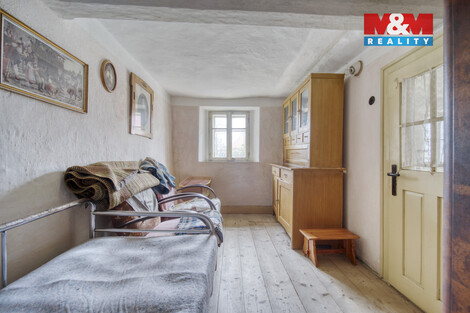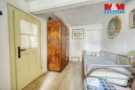 Nabízíme k prodeji kouzelnou chalupu v klidné části obce Zahořany u Domažlic. Tato chalupa o dispozici 2+1 poskytuje útulné bydlení s možností rozšíření obytného prostoru vybudováním podkroví. Nemovitost se pyšní užitnou plochou 55m2 a je situována na rohovém pozemku o rozloze 310 m2. Vytápění je zde zajištěno kachlovými kamny, nebo elektrickými akumulačními kamny. K chalupě náleží prostorná stodola a zahrada, ideální pro relaxaci a zahradničení. Dům je napojen na kanalizaci, veřejný vodovod a elektřinu, s koupelnou připravenou k dokončení dle vašich představ. Na pozemku se nachází i kopaná studna. Využijte tuto jedinečnou příležitost pro klidné bydlení nebo rekreační využití v malebném prostředí nedaleko Domažlic. Veškerá občanská vybavenost se nachází v nedalekých Domažlicích. S financováním Vám rádi pomůžeme. Těšíme se na Vás