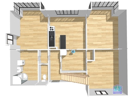 Nabízíme Vám ke koupi jednopatrový, podsklepený rodinný dům (vilu) s podkrovím, který se nachází v západní, okrajové části lázeňské obce. Dům postavený ve 30. letech minulého století stojí ve Sluneční ulici v Konstantinových Lázních. Z nádvoří je vstup do malé chodby, odkud se dostaneme do přízemního bytu a po schodišti do bytu v patře. V přízemí je z haly přístup do kuchyně a na WC. Z kuchyně je vstup do obývacího pokoje a z něj dále do ložnice. Z kuchyně se dostaneme i do dětského pokoje, přes který je vstup do koupelny se sprchovým koutem a též na WC. V patře je další byt se vstupní halou, ze které se dostaneme na samostatné WC a do koupelny s vanou, umyvadlem a plynovým kotlem. Z haly je dále vstup do obývacího pokoje s balkonem. Z obývacího pokoje je vstup i do ložnice. V suterénu domu jsou 4 místnosti. Dům je zajímavě dispozičně řešen a lze jej využívat ihned k bydlení. Byt v přízemí je vytápěn plynovými kamny WAW, byt v patře má vytápění ústřední z plynového kotle. Ohřev vody je zajištěn v obou bytech el. boilery. Odpad je sveden do obecní kanalizace, voda je přivedena z obecního vodovodu. Dům je napojen na plyn a elektřinu 220/380V. K domu náleží zahrada o výměře 430 m2 a nádvoří se zděnou garáží a dřevěnou kolnou. Konst. Lázně jsou vzdáleny 39 km od Plzně, 19 km od Stříbra, 31 km od Tachova a 25 km od sjezdu z dálnice D5. Okolí Konst. Lázní oplývá krásnou, zalesněnou přírodou, cyklostezkami, k dispozici je i přímé vlakové napojení do Plzně.